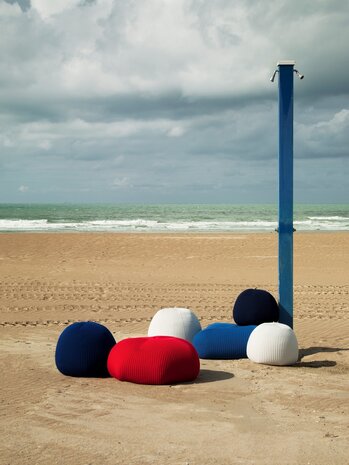 Water repellent and fade resistant outdoor pouffe. Only few left! We are selling our very last stock items. *Important remark The pouf is composed of a basic outdoor pouffe (size medium) in a neutral tone, topped with a removable knitted outdoor cover, available in different colours. If you already own the medium basic pouffe, you can order the knitted cover separately. If not, be sure to add the basic pouf in your order choices above. Maintenance instructions The removable covers can be washed according to wool washing directions. Washing by hand is recommended. Cold bleaching is not possible. Do not dry in a tumble drier. Warm (not hot) iron. The basic outdoor pouffe can also be washed on the surface only with neutral detergents. It is not the intention for the covering to be washed separately, considering the filling consists of little balls which are hard to take out and hard to replace afterwards. Knitted cover with string on bottom to tie up Collection: Bonnet Outdoor Composition yarn: cover knitted out of 95% acryl yarn + 5% elastic yarn Craft: Knitted Designer: Liset van der Scheer Colour: 9651 Size: Quadrato (H 28cm x W 85cm) Bonnet outdoor is out of collection. More details about the collection? Contact us via our official website.